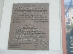 Umístění: Kyjev, Sofijské náměstí, na zdi Sofijského chrámuZde na Sofijském náměstí 28. září 1914 (11. října nového kalendáře) slavnostně přisahali dobrovolníci České družiny a byl vysvěcen její prapor. Tím bylo zahájeno formování ozbrojených sil budoucí Československé republiky.