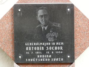 Generál Antonín Sochor Hrdina Sovětského svazu, velitel motorizovaného praporu samopalníků 1. čs. samostatné brigády v SSSR, zahynul za dosud nevyjasněných okolností při autonehodě ve vojenském prostoru Ralsko - Kuřivody.