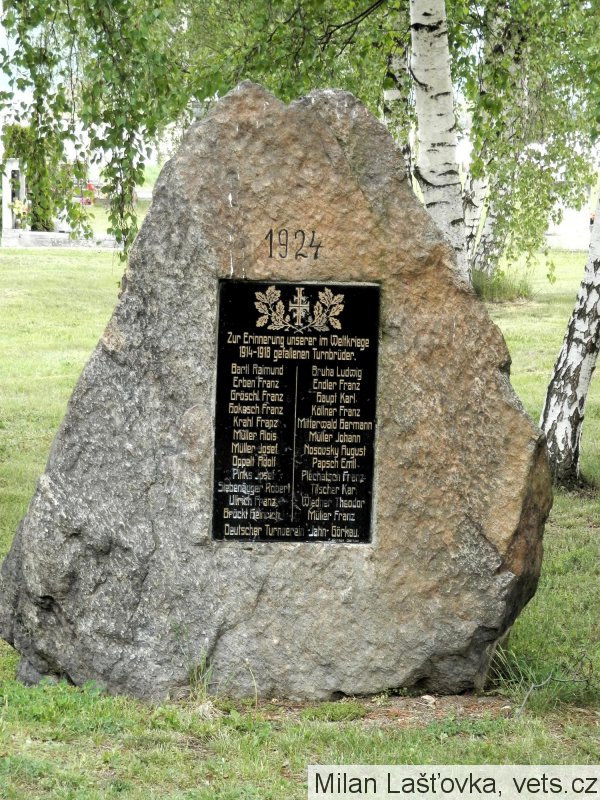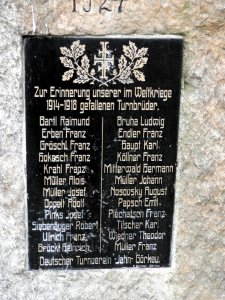 pomník padlých německého tělocvičného spolku Jahn, v nedávné době obnovený, bohužel zlacení písmen již se odlupuje