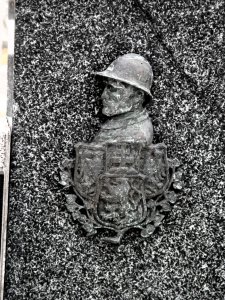na hrobu v kameni reprodukovaná fotografie muže v uniforně, vpravo reliéf Čsl. legií
