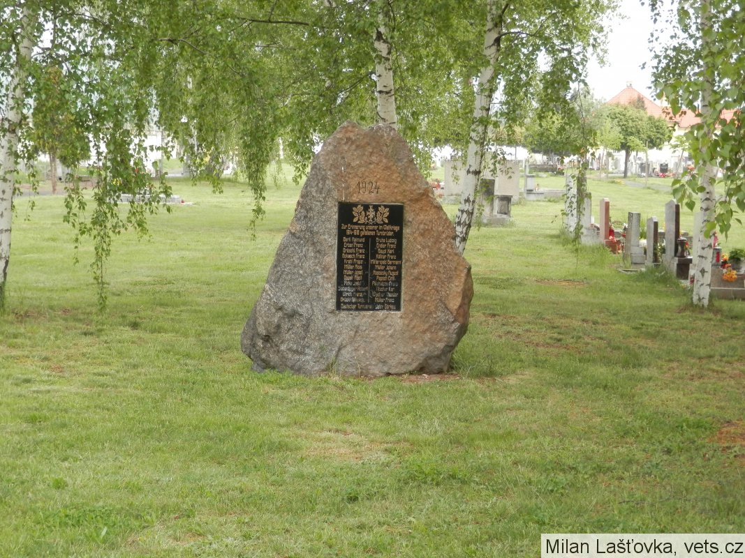 Umístění: Jirkov, Zaječická, v zadní části městského hřbitova vpravo od hlavní cestyZur Erinnerung unserer im Weltkriege