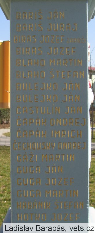 BARIŠ JÁN, BARIŠ JURAJ, BIRAS JOZEF ZARIEČI, BLAHO MARTIN, BLAHO ŠTEFAN, BULEJKO JÁN, BULEJKO JÁN, ČASTULÍN JÁN, ČAPÁK ONDREJ, ČAPÁK IMRICH, ČECHOVSKÝ ONDREJ, GÁŽI MARTIN, GUGA JÁN, GUGA JOZEF, GUGA MARTIN, HABÁNIK ŠTEFAN, Hotko Jozef