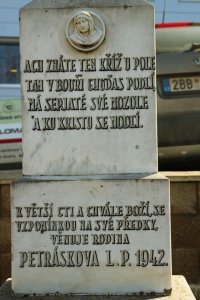 Pamětní desku odhalili v roce 1947 členové místní jednoty Orel na památku svého člena, který padl v Jugoslávii.