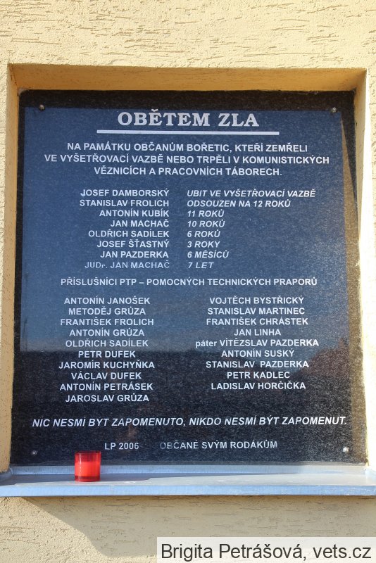 NA PAMÁTKU OBČANŮM BOŘETIC, KTEŘÍ ZEMŘELI