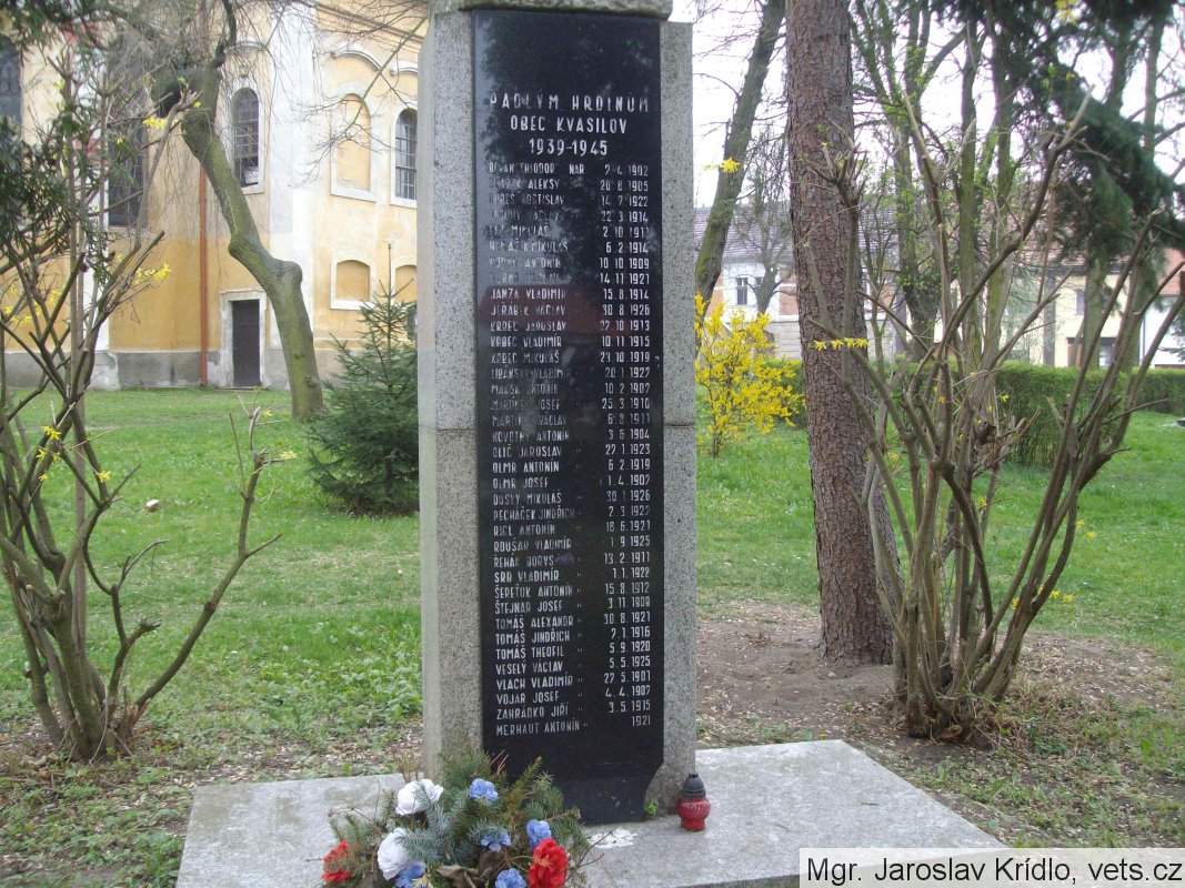 Krbec Vladimír, vojín, nar. 24.11.1915, Kvasilov, Volyň, kmenové číslo 7.649/M, příslušník 1. čs. samostatná brigáda v SSSR. Odveden 15.03.1944, Jefremov, vojín, česká. Padl 10.-23.09.1944, Karpaty.