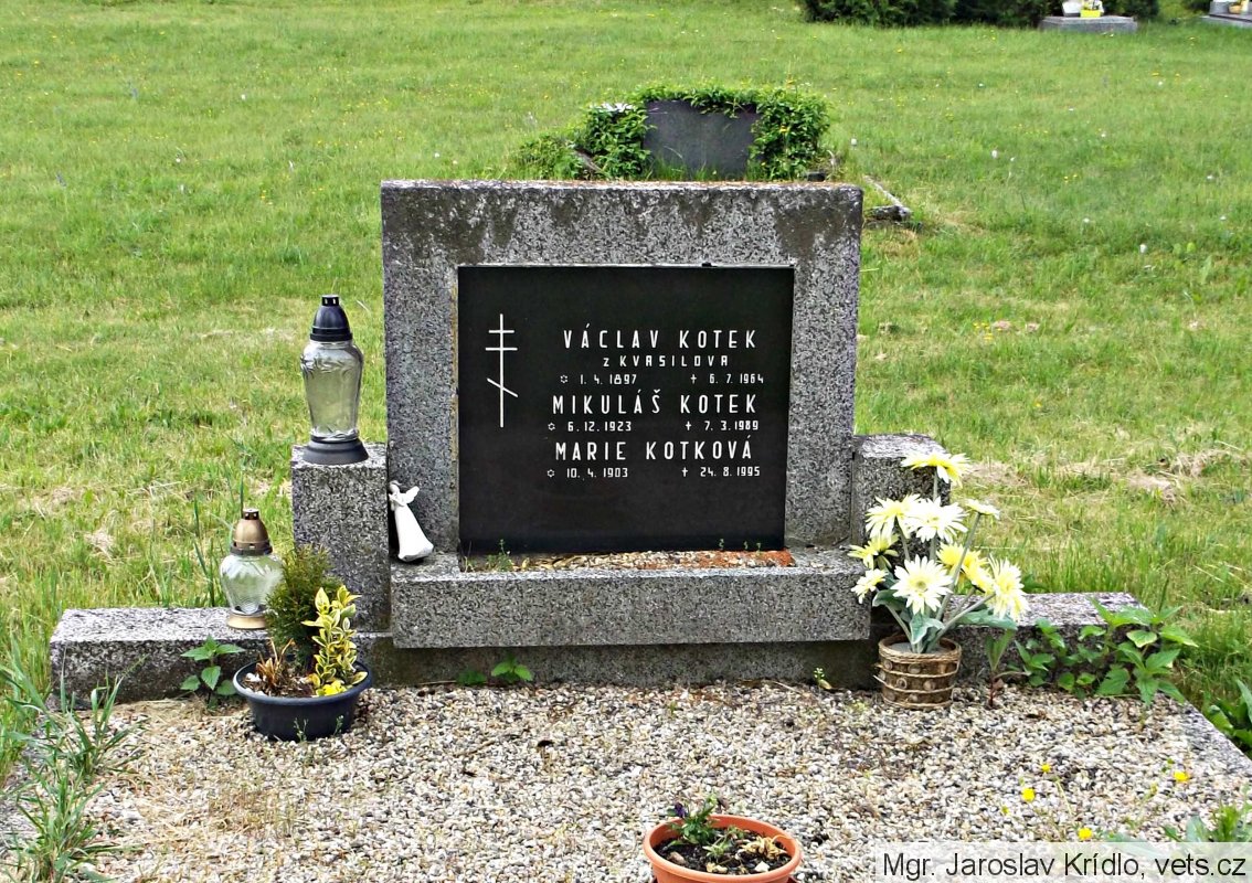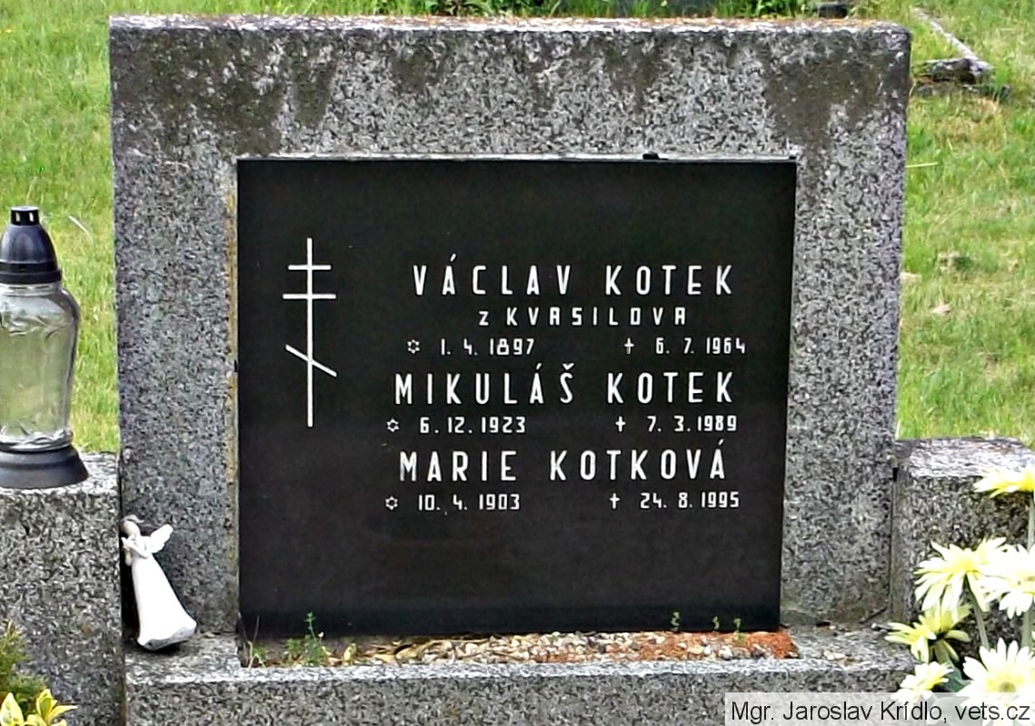 Kotek Mikuláš, Václav, *6.12.1922(?), místo narození Kvasilov, Volyň, národnost česká, vojín, kmenové číslo 7.640/M, datum a místo odvodu 15.03.1944, Jefremov, č. protokolu-6.044. (zdroj: http://www.vuapraha.cz/fallensoldierdatabase )
