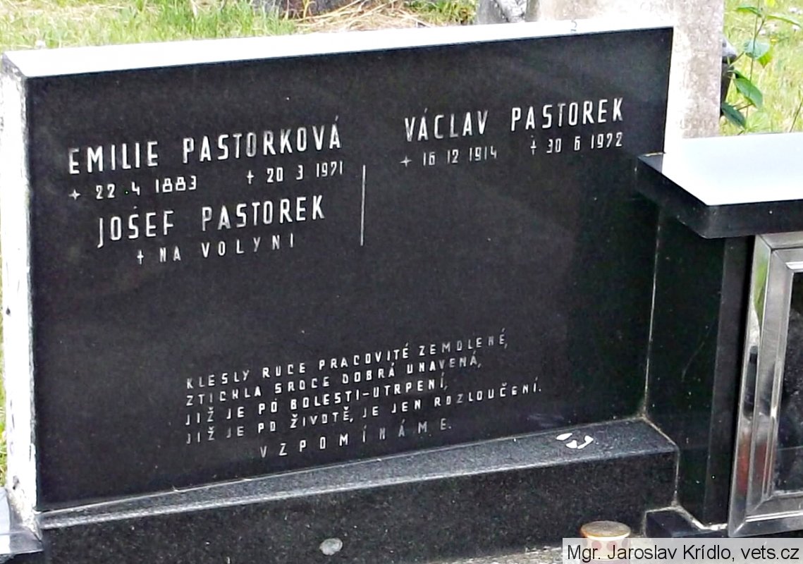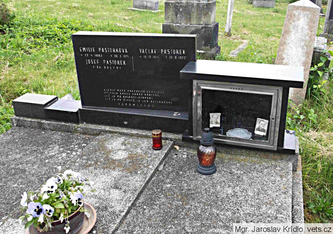 Pastorek Václav, *16.11(?).1914, místo narození Kvasilov, Volyň, národnost česká, hodnost vojín, kmenové číslo 7.880/M, datum a místo odvodu 16.03.1944, Jefremov, číslo protokolu 6.284. (zdroj: http://www.vuapraha.cz/fallensoldierdatabase )