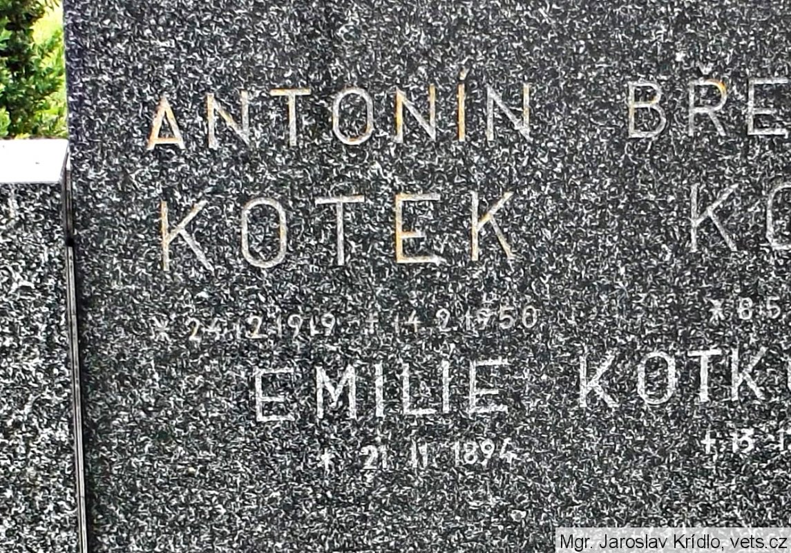 Kotek Antonín, *23(?).12.1919, místo narození Kvasilov, Volyň, vojín, kmenové číslo 7.639/M, datum a místo odvodu 15.03.1944, Jefremov, číslo protokolu 6.043. (zdroj: http://www.vuapraha.cz/fallensoldierdatabase )