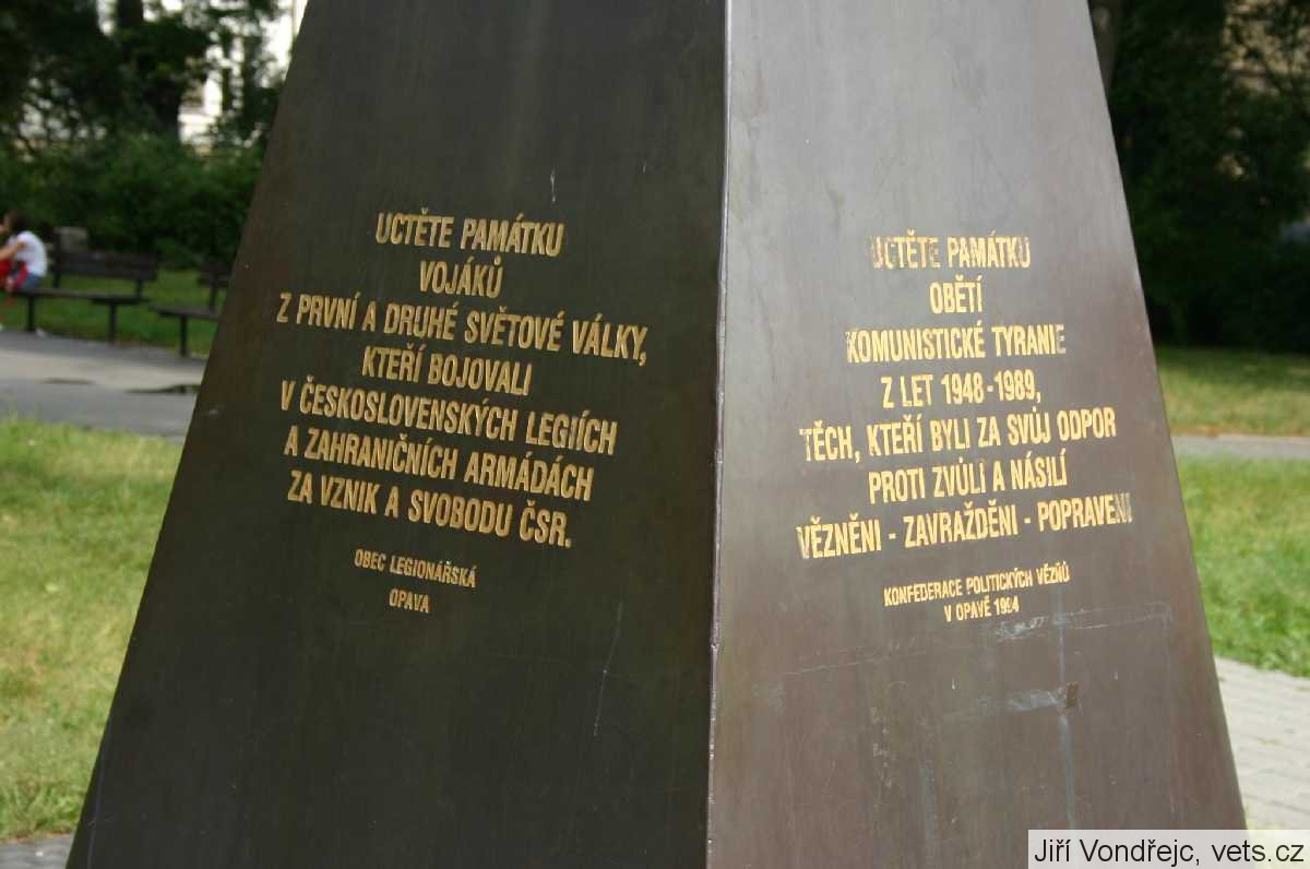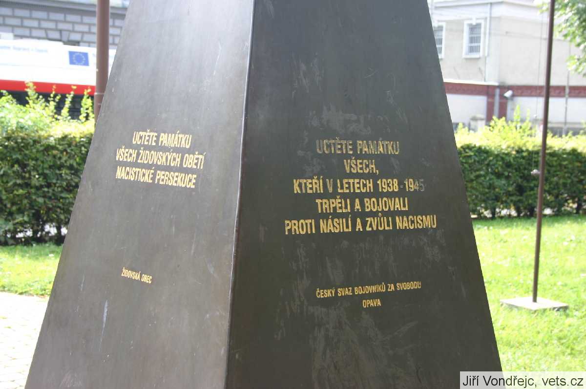 Pomník postaven jako dík Rudé armádě za osvobození Opavy v r. 1945, stával na náměstí Republiky v Opavě do 70. let kdy byl zbourán a na jeho místě zřízeno parkoviště pro místní hotel Koruna a banku. Z pomníku se dochovaly pouze 4 mramorové desky, které byli použity na pomník nový a ten byl umístěn na náměstí Osvoboditelů v Opavě, dnes je pomník opět zbourán a upraven, přesunut vedle archívu blíže křižovatky ulic Praskova a Sněmovní.