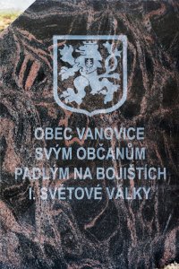Pomník stojící před kostelem sv. Václava byl odhalen 28.9.1928. Původně pouze obecně odkazoval na vojáky padlé ve válce prostřednictvím letopočtu a reliéfu legionáře. V roce 2014 byly k pomníku přidány dvě desky – levá deska s uvozujícím textem, pravá se seznamem deseti občanů Vanovic padlých během 1. světové války. Slavnostní odhalení desek proběhlo 28.10.2014 u příležitosti výročí vzniku ČSR. Obě desky vyšly obec na 50 tisíc korun.