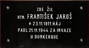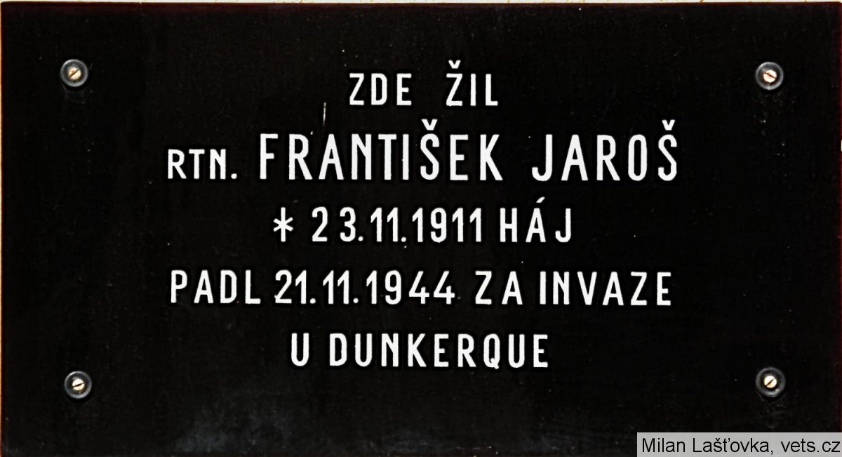 Frant. Jaroš nar. 23.11.1911 popraven 21.11.1944 rotný zahr.arm.,