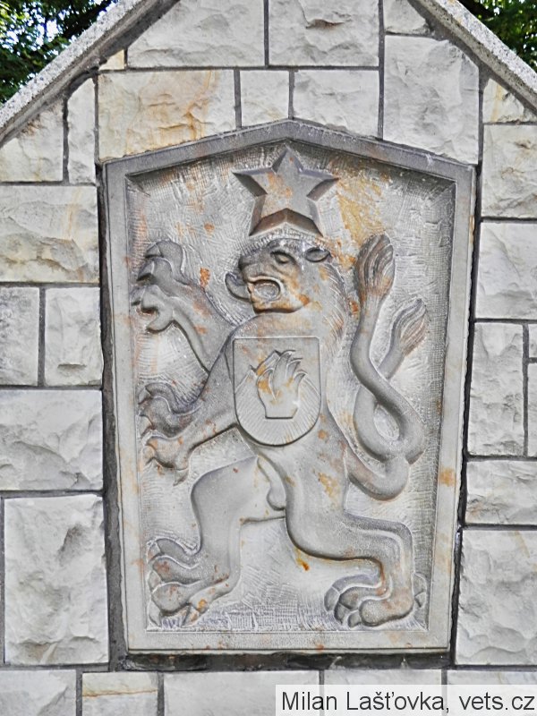 pomník datován 1947, avšak státní znak je vz. 1960, zřejmě tedy byl dodatečně upravován