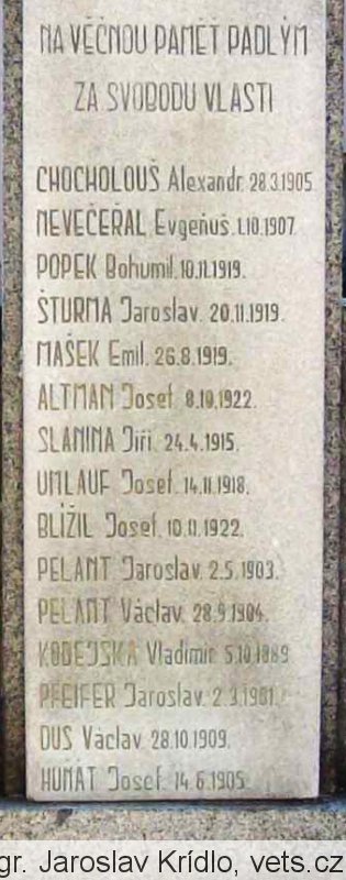 Šturma Jaroslav, vojín, nar. 4.12.1920, Buršovka, Volyň, kmenové číslo 11537/m, příslušník 1. pěší brigáda, 1. dělostřelecký pluk. Padl 11.3.1945, Lipt. Sv. Mikuláš.