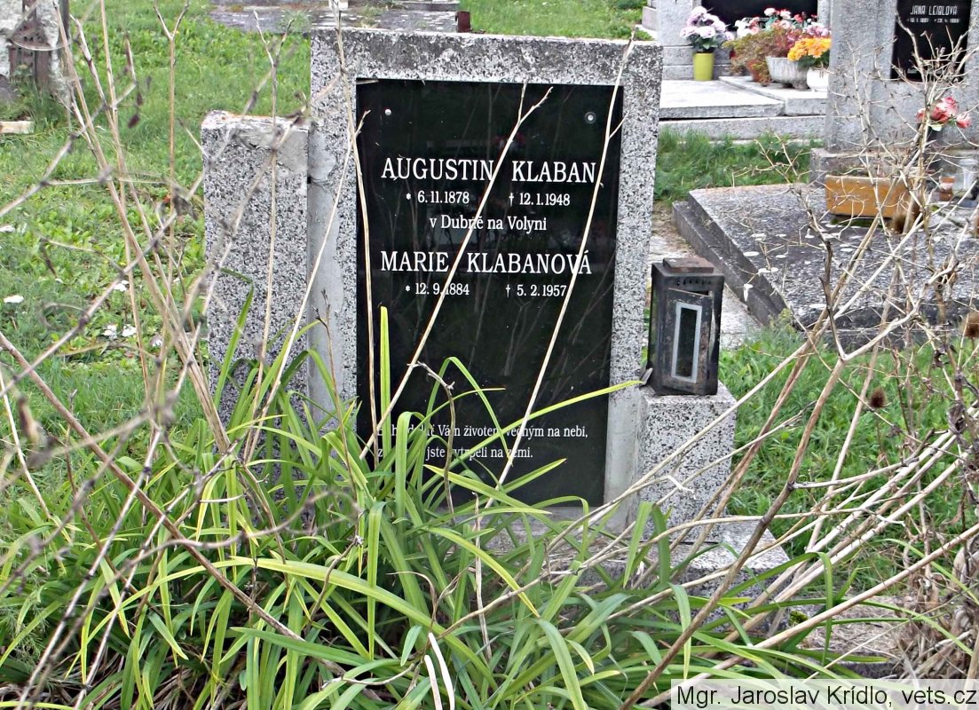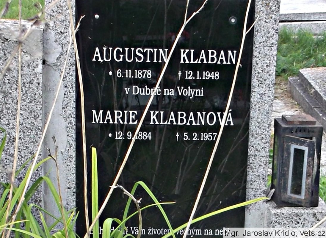 Klaban Augustín, *29(?).6(?).1878, okr. Dubenský Új., Volyň. gubernie, druhá a poslední hodnost v legiích vojín, datum zařazení do legie 23.2.1917, konec v legiích 30.11.1917, zkratky armád, u kterých sloužil R, LR, druhý útvar v legiích zál. pl., poslední útvar v legiích št. 1. div., prameny osobní karta legionáře a legionářský poslužný spis, poznámka: osvobozen od služby, není legionář ze zákona,