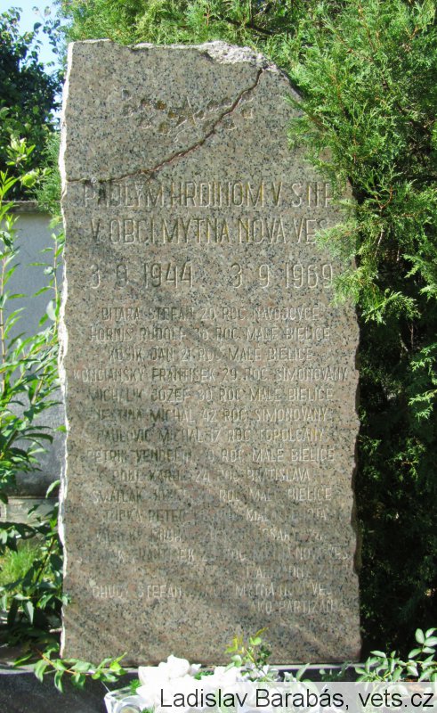 Umístění: Mýtna Nová Ves, v parčíku vedľa hlavnej cesty, pred domom č. 19Nápis: