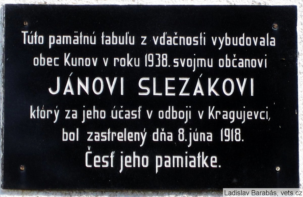 obec Kunov v roku 1938. svojmu občanovi