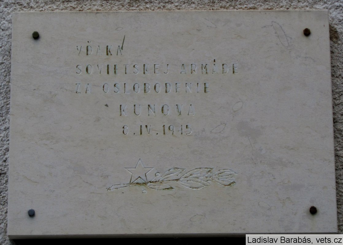 Umístění: Kunov, pri odbočke z hlavnej cesty ku kultúrnemu domu (oproti domu č. 59)Nápis:
