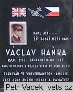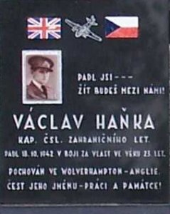 Haňka Václav četař aspirant letectva čs., osobní číslo Z; F-3229, nar. 7.11.1919, Sokolnice. Odveden 4.5.1940, Marseille, Francie. Příslušník RAF, 311. peruť. Zahynul 18.10.1942 Británie, Northolt, Uxbridge, Middlessex při letecké havárii za přeletu, Wellington T2564 (KX-T), pohřben Wolverhampton, St. Philip Penn Field, MA-148 v hodnosti poručíka.