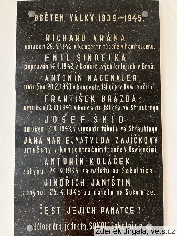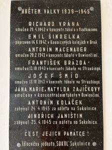 Umístění: Sokolnice, Masarykova 370, v budově sokolovnyOBĚTEM VÁLKY 1939–1945.