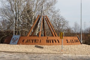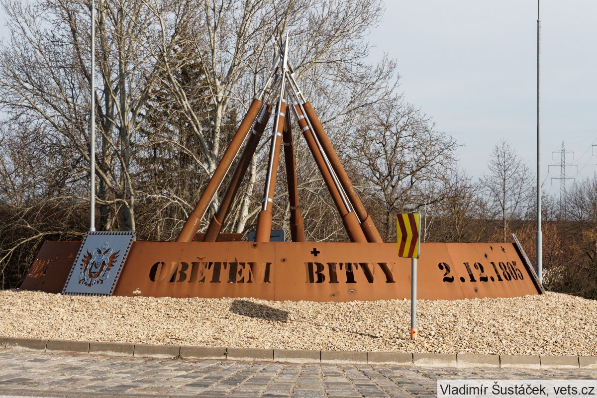 Pušky na kruhovém objezdu. Památník připomíná bitvu tří císařů, demonstruje mír. iDNES.cz, 22.1.2026)