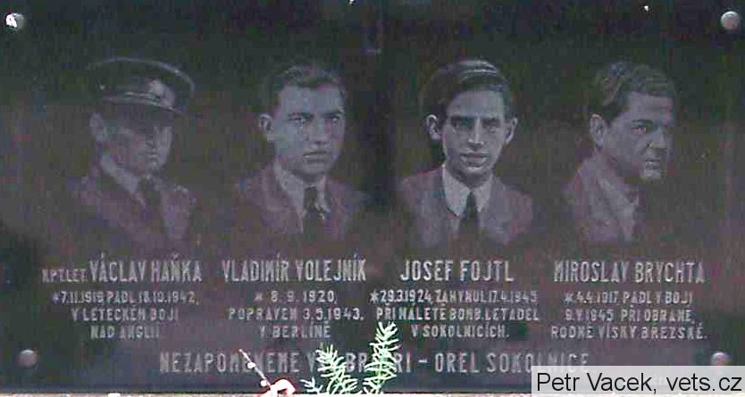 Umístění: Sokolnice, Kobylnická, hřbitovKPT. LET. VÁCLAV HAŇKA *7.11.1919, PADL 18.10.1942 V LETECKÉM BOJI NAD ANGLIÍ