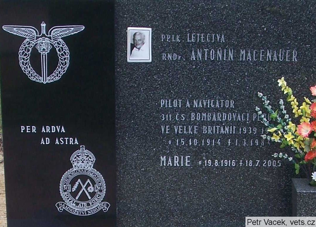Macenauer Antonín, poručík letectva z pov. čs., osobní číslo Z; L-75; RAF/82619, nar. 15.10.1914, Šlapanice. Odveden 2.10.1939, Paříž, Francie. (zdroj databáze VÚA Praha)