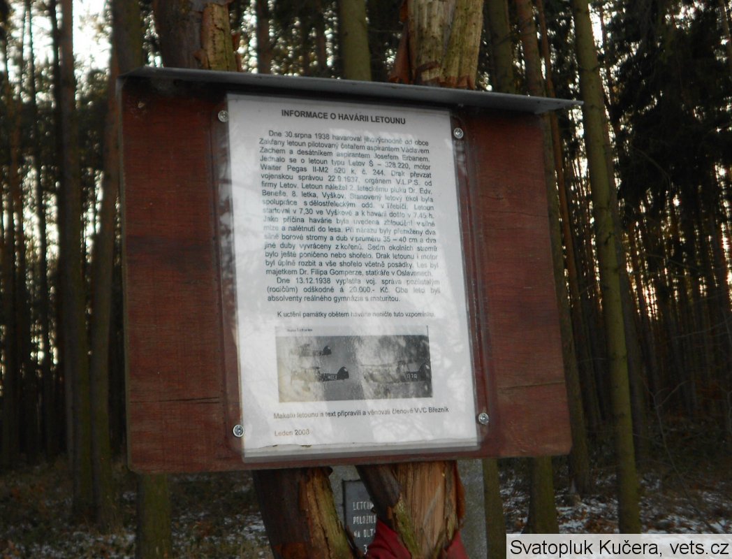 Dne 30.srpna 1938 havaroval jihovýchodně od obce Zakřany letoun pilotovaný četařem aspirantem Václavem Zachem a desátníkem aspirantem Ladislavem Erbanem. Jednalo se o letoun typu Letov Š - 328.220, motor Walter Pegas II-M2 520 k, č.244. Drak převzat vojenskou správou 22.9.1937, orgánem V.L.P.S. od firmy Letov. Letoun náležel 2. leteckému pluku Dr. Edv. Beneše, 8. letka, Vyškov. Stanovený letový úko, byla spolupráce s dělostřeleckým odd. v Třebíči. Letoun startoval v 7,30 ve Vyškově a k havárii došlo v 7,45 h. Jako příčina havárie byla uvedena zbloudění v silné mlze a nalétnuti do lesa. Při nárazu byly přeraženy dva silné borové stromy a dub v průměru 35 - 40 cm a dva jiné duby vyvráceny z kořenů. Sedm okolních stromů bylo ještě poničeno nebo shořelo. Drak letounu i motoe byl úplně rozbit a vše shořelo včetně posádky. Les byl majetkem Dr. Filipa Gomperze, statkáře v Oslavanech. Dne 13.12.1938 vyplatila voj. správa pozůstalým (rodičům) odškodné a 20.000,- Kč. Oba letci byli absolventy reálného gymnázia s maturitou.