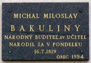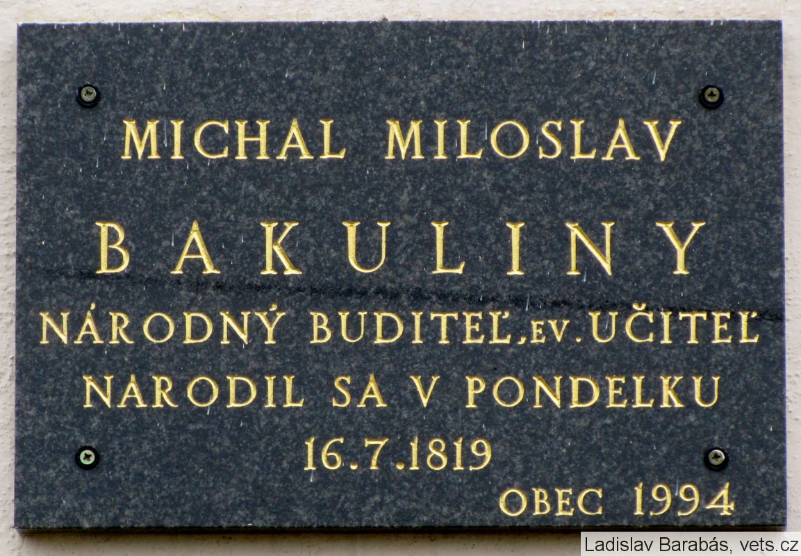 Pamätná tabuľa Michal Miloslav Bakulíny