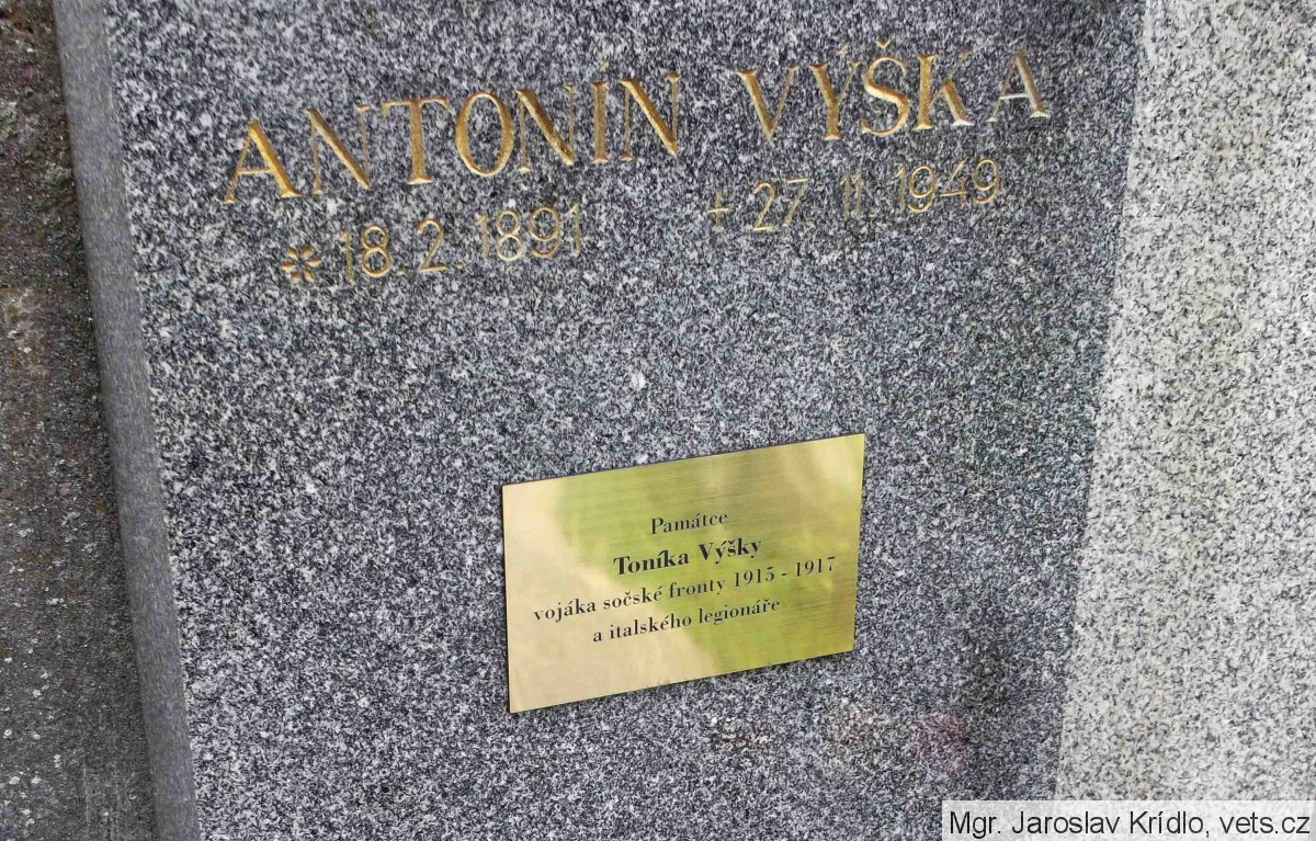 Výška Antonín, nar. 18.2.1891 Kralovice. V RU armádě sloužil u 6. pěšího pluku jako četař. Zajat 29.1.1918, Monte Bello. Do čs legií v Itálii se přihlásil 26.4.1918, Padula. Zařazen 26.4.1918 jako vojín k 32. pěšímu pluku. Demobilizován 23.10.1919 jako strážmistr. (zdroj: http://www.vuapraha.cz/fallensoldierdatabase )