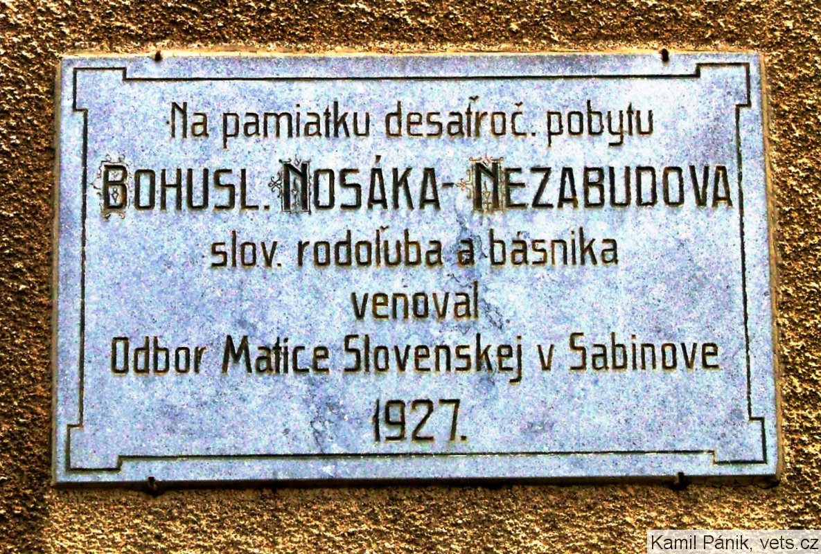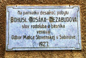 Pamätná tabuľa Bohuslav Nosák-Nezabudov