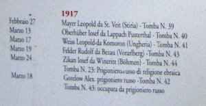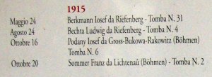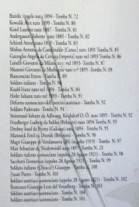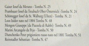 ZÚ Řím získal od místního badatele – pan Giovanni Terranova z provincie Trento fotografii seznamu vojáků, kteří byli na tomto hřbitově původně pohřbeni. U některých z nich je přímo uveden český původ (Böhmen), u dalších lze předpokládat jejich český původ na základě jména. Jména padlých jsou psána v německé formě, často pozměněné italským přepisem. Místa narození zemřelých jsou uváděna většinou v německé podobě.