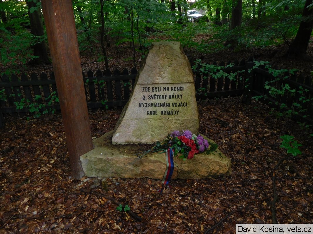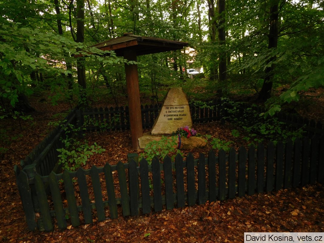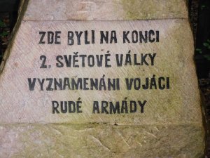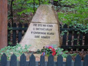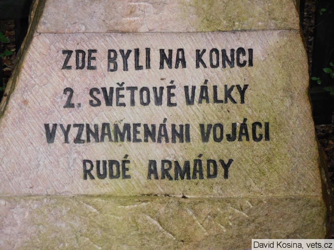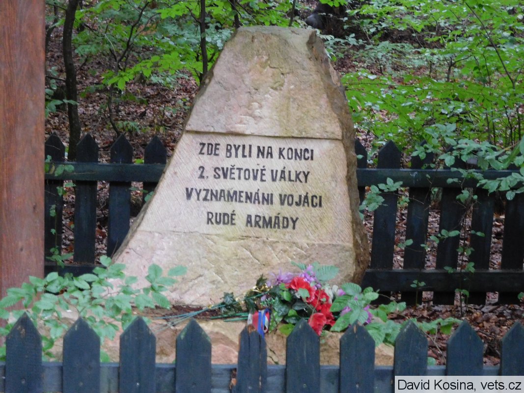 Dříve se v této lokalitě nacházelo pouze dřevěné "paraplíčko" s nápisem: Vzpomínáme našich hrdinných osvoboditelů, kteří zde byli v r. 1945 vyznamenáni řády SSSR.