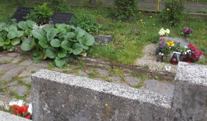 hrob zrekonstruován péčí okrašlovacího spolku Budíček z Vroutku.