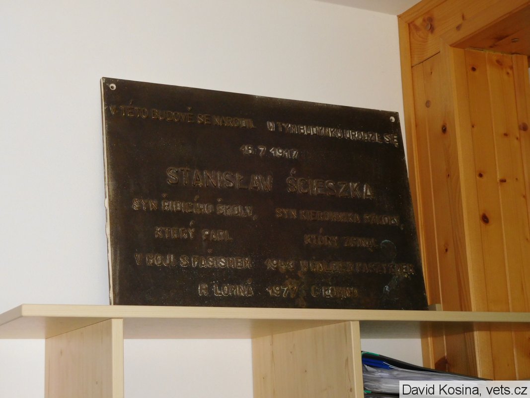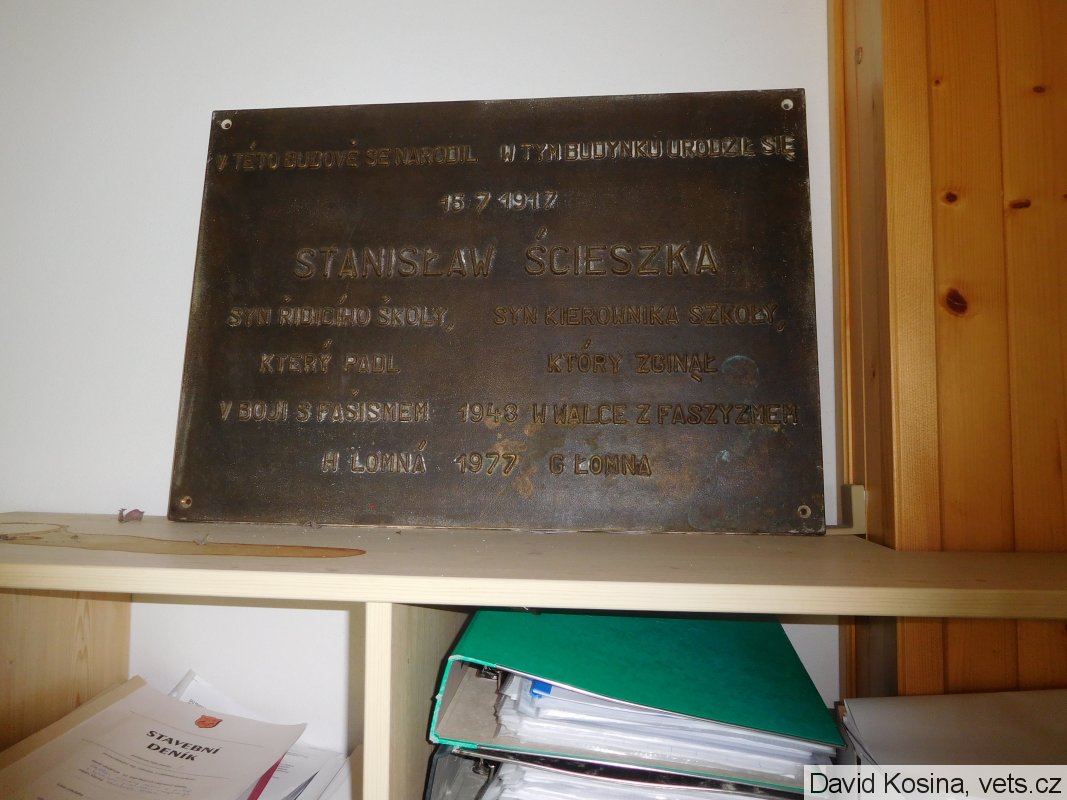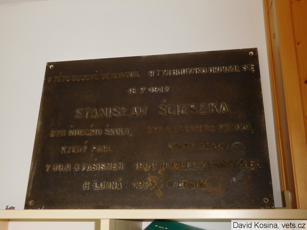 Dle ústního sdělení pracovnice ObÚ Horní Lomná byla pamětní deska sundána z budovy polské školy cca před 5 lety. Paní uvedla, že budova této bývalé školy je nyní v rekonstrukci. Deska je v současné době umístěna v jedné z kanceláří v patře OÚ (není zavěšena, pouze stojí na polici opřena o stěnu). Paní dále sdělila, že zatím není rozhodnuto, kdy bude znovu odhalena.
