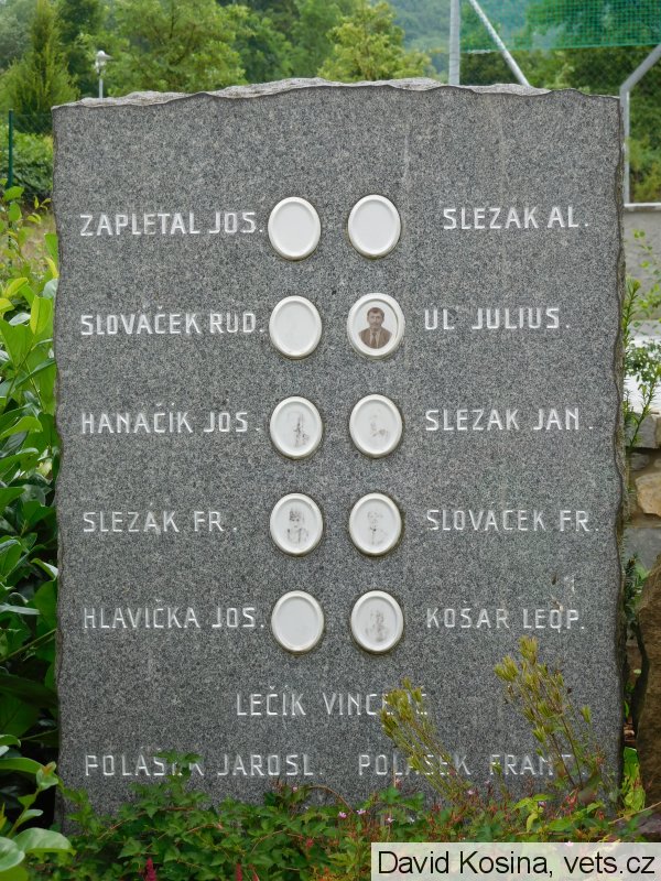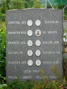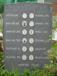 Na deskách u pomníku je zapsáno celkem 27 obětí 1. světové války a 19 jmen obětí 2. světové války. Obec se v době německé okupace stala jakýmsi centrem zdejšího odboje. Do aktivního odporu proti fašistům se mimo členů odbojové skupiny zapojila i celá řada obyvatel vesnice.