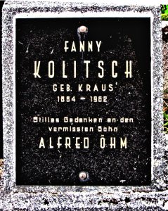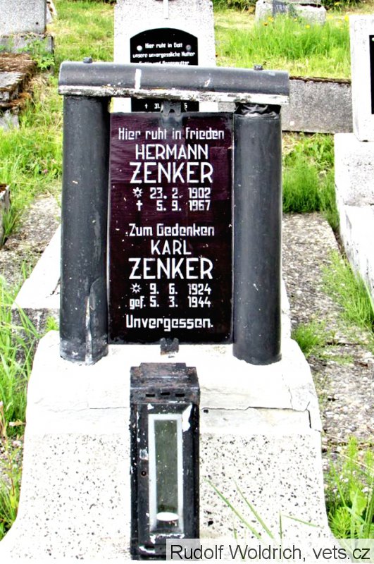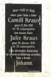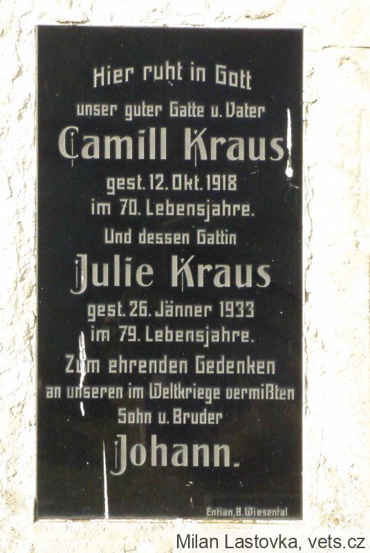 kenotaf je přikryt novodobou deskou, čitelná jen poslední věta "dem Auge fern, dem Herzen ewig nah!" - Daleko od oka, navždy blízko k srdci!