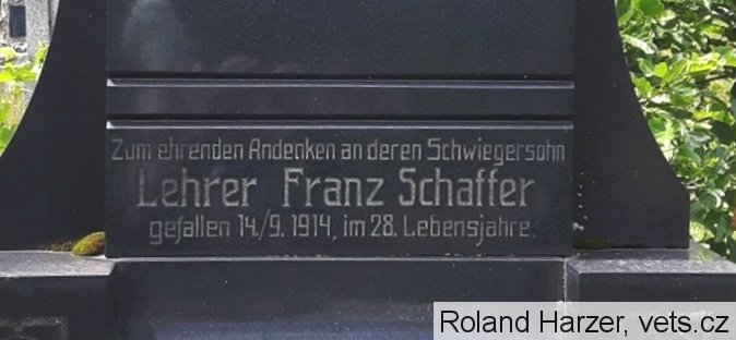 Schaffer Franz: *1886 Schönwald, Čechy. Domovem: Abertamy, okres Nejdek. +15.9.1914 Szeged, Uhry. Místo pohřbení: Szeged, řada V, odd. I, hrob č. 3.