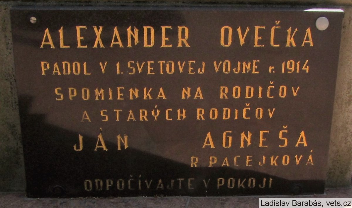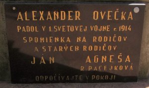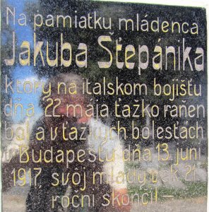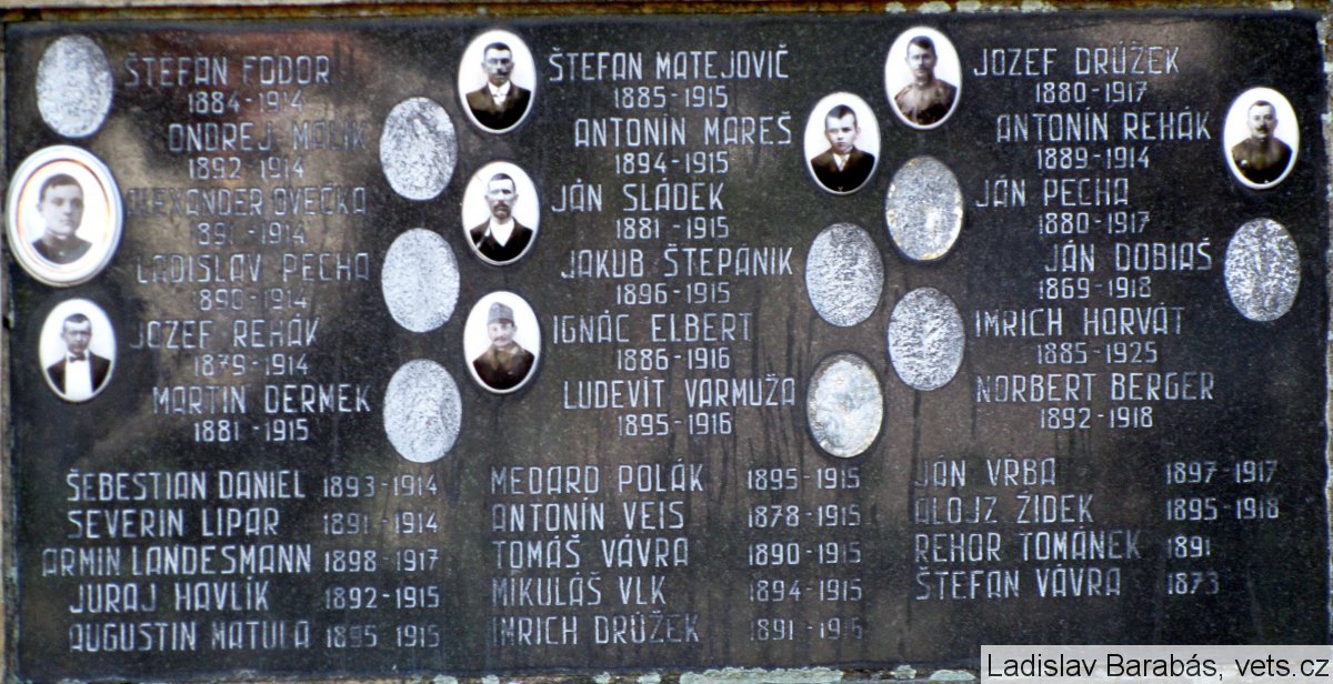 ŠTEFAN FODOR 1884-1914, ONDREJ MALÍK 1892-1914, ALEXANDER OVEČKA 1891-1914, LADISLAV PECHA 1890-1914, JOZEF REHÁK 1879-1914, MARTIN DERMEK 1881-1915, ŠTEFAN MATEJOVIČ 1884-1915, ANTONÍN MAREŠ 1894-1915, JÁN SLÁDEK 1881-1915, JAKUB ŠTEPÁNIK 1896-1915, IGNÁC ELBERT 1886-1916, LUDEVÍT VARMUŽA 1895-1916, JOZEF DRÚŽEK 1980-1917, ANTONÍN REHÁK 1889-1914, JÁN PECHA 1880-1917, JÁN DOBIAŠ 1868-1980, IMRICH HORVÁT 1885-1925, NORBERT BERGER 1892-1918, ŠEBESTIAN DANIEL 1893-1914, SEVERIN LIPAR 1891-1914, ARMIN LANDESMANN 1898-1917, JURAJ HAVLÍK 1892-1915, AUGUSTIN MATULA 1995-1915, MEDARD POLÁK 1995-1915, ANTONÍN VEIS 1878-1915, TOMÁŠ VÁVRA 1890-1915, MIKULÁŠ VLK 1894-1915, IMRICH DRÚŽEK 1891-1916, JÁN VRBA 1897-1917, ALOJZ ŽIDEK 1895-1918, REHOR TOMÁNEK 1891, ŠTEFAN VÁVRA 1873