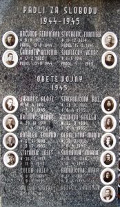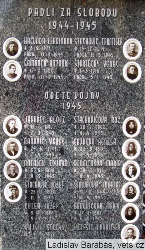JAKUBEC ALOJZ *19.6.1910 †7.3.1945, BAŇOVIČ IGNÁC *24.10.1901 †7.4.1945, ANTÁLEK EDUARD *6.6.1898 †9.5.1945, STACHOVIČ JOZEF *26.3.1917 †11.4.1945, ČULEN JOZEF *9.7.1894 †9.4.1945, DUJSÍK ŠTEFAN *14.8.1891 †12.4.1945, STACHOVIČOVÁ ROZ. *28.9.1902 †6.4.1945, GAJDOVÁ AGNEŠA *22.9.1884 †6.4.1945, DERMEKOVÁ MARIA *30.3.1912 †6.4.1945, ŠIMUNOVÁ MARIA *11.9.1866 †6.4.1945, BAŇOVIČOVÁ MARIA *17.1.1881 †6.4.1945, HELEŠIC FRANTIŠEK *2.11.1911 †15.9.1942