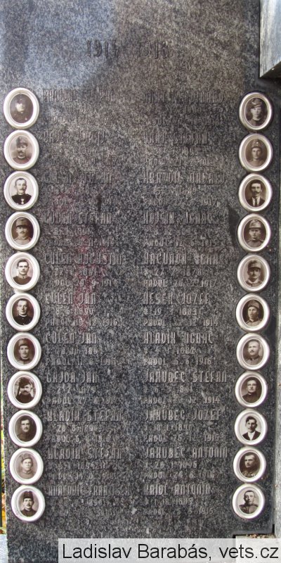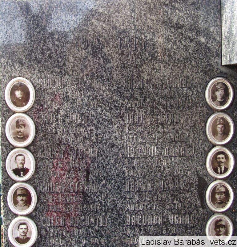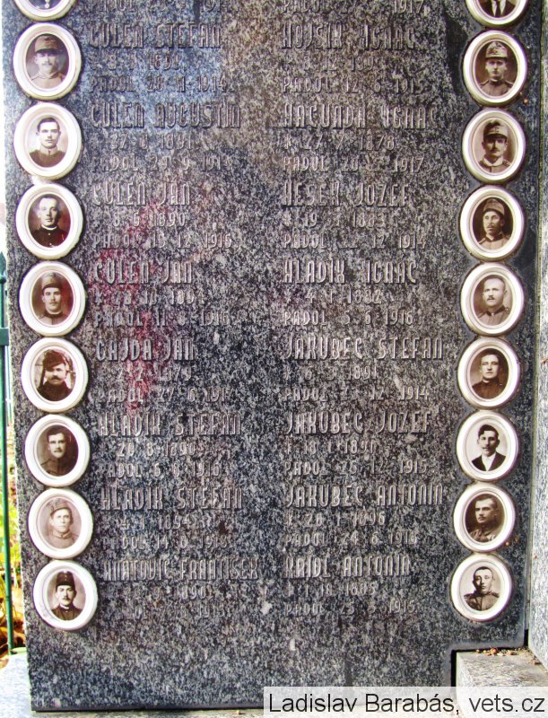 BAŇOVIČ ŠTEFAN *25.8.1890 PADOL 26.12.1914, BAJER JURAJ *26.9.1886 PADOL 20.10.1917, ČULEŇ ŠTEFAN *11.8.1886 PADOL 23.9.1914, ČULEŇ ŠTEFAN *8.5.1891 PADOL 28.11.1914, ČULEŇ AUGUSTÍN *27.8.1891 PADOL 29.9.1914, ČULEŇ JÁN *8.6.1890 PADOL 15.12.1916, ČULEŇ JÁN *28.10.1894 PADOL 11.8.1916, GAJDA JÁN *2.2.1879 PADOL 27.6.1917, HLADÍK ŠTEFAN *20.8.1890 PADOL 6.8.1916, HLADÍK ŠTEFAN *4.1.1894 PADOL 14.8.1918, HNATOVIČ FRANTIŠEK *29.9.1890 PADOL 7.8.1915, HNÁT FERDINAND *24.12.1880 PADOL 27.10.1918, HNÁT ŠTEFAN *30.6.1893 PADOL 21.2.1915, HRAZDIL ONDREJ *15.7.1889 PADOL 27.6.1917, HOJSÍK IGNÁC *8.12.1893 PADOL 12.6.1915, HAČUNDA IGNÁC *27.7.1878 PADOL 20.5.1917, HESEK JOZEF *19.3.1883 PADOL 22.12.1914, HLADÍK IGNÁC *4.1.1882 PADOL 5.6.1916, JAKUBEC ŠTEFAN *6.3.1891 PADOL 23.12.1914, JAKUBEC JOZEF *18.1.1891 PADOL 25.12.1915, JAKUBEC ANTONÍN *20.1.1896 PADOL 24.6.1918, KRÍDL ANTONÍN *1.10.1885 PADOL 25.5.1915, KRÍDL JAROLÍM *29.9.1897 PADOL 23.9.1916, KOVÁČ IGNÁC *5.6.1872 PADOL 9.10.1917, KOVÁČ FRANTIŠEK *17.2.1897 PADOL 23.9.1916, MAREŠ JÁN *6.2.1875 PADOL 16.4.1915, NEOVESKÝ LADISLAV *12.6.1873 PADOL 10.10.1915, NEOVESKÝ TEOFIL *10.9.1900 PADOL 8.10.1918, PAVLÍK JOACHIM *4.9.1899 PADOL 7.10.1917, PAVLÍK BALTAZÁR *8.1.1890 PADOL 25.1.1915, PÍSEČNÝ FRANTIŠEK *30.11.1897 PADOL 11.8.1918, PAPÁNEK ŠTEFAN *10.8.1893 PADOL 10.8.1917, RIŠKA FERDINAND *15.10.1893 PADOL 30.3.1915, RIŠKA ŠTEFAN *5.5.1892 PADOL 15.6.1915, RIŠKA ANTONÍN *7.8.1894 PADOL 20.10.1915, STACHOVIČ FRANTIŠEK *25.3.1886 PADOL 7.7.1915, STACHOVIČ FRANTIŠEK *7.9.1886 PADOL 7.4.1916, ŠTVRTECKÝ ŠTEFAN *15.7.1885 PADOL 11.9.1917, ŠTVRTECKÝ MELICHAR *6.1.1874 PADOL 16.9.1916, VALÚŠEK IZAK *10.6.1898 PADOL 14.6.1919, VALÚŠEK GAŠPAR *1.1.1886 PADOL 28.11.1914, ONDRISKA ANTONÍN *10.4.1883 PADOL 13.5.1916, STACHOVIČ MATEJ *2.8.1866 PADOL 15.1.1918