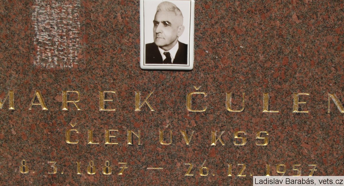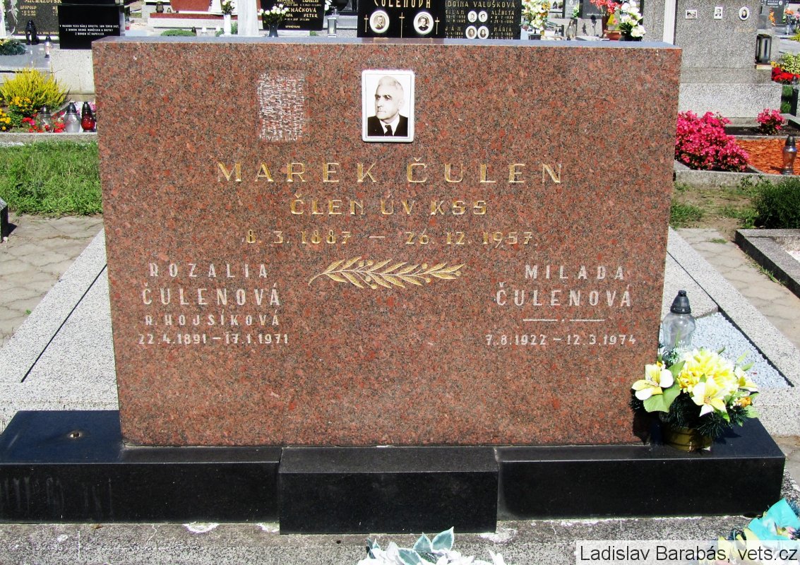 Marek Čulen bol komunistický politik a funkcionár. V roku 1939 ho gestapo odvlieklo do Hodonína, neskôr bol väznený v Ilave. Pred hrozbou nového zatknutia emigroval do ZSSR, kde vystupoval v slovenskom vysielaní moskovského rozhlasu. Burcoval do boja proti fašizmu a nabádal vojakov k sabotážnym akciám. V roku 1944 priletel na povstalecké územie (spolu s J. Švermom a R. Slánskym), kde bol kooptovaný za člena SNR. Vyznamenania: Rad SNP I. tr., Rad Veľkej vlasteneckej vojny, Čs. vojnový kríž 1939, Rad 25. februára 1948, Rad červenej hviezdy, Rad republiky.