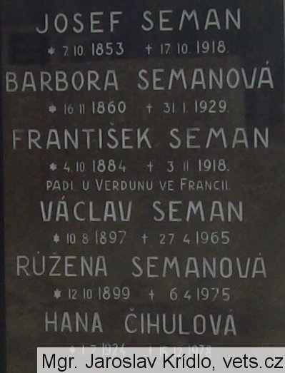 Umístění: Zeměchy, hřbitovFRANTIŠEK SEMAN