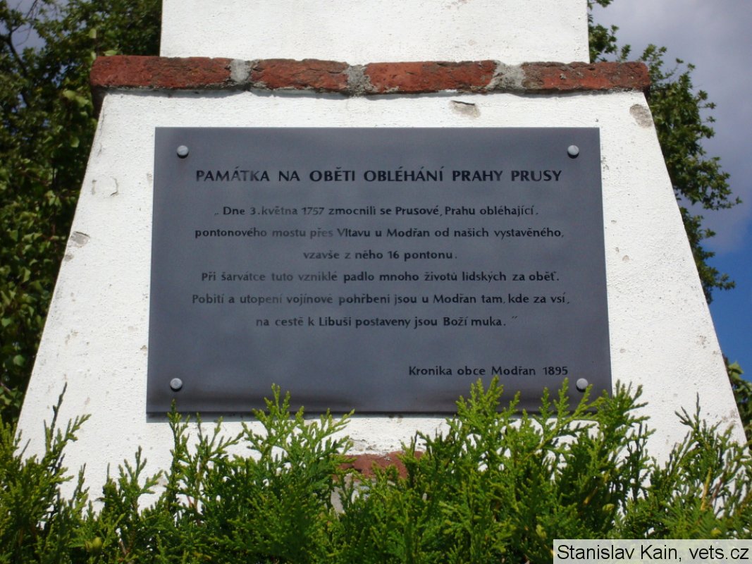Pobití a utopení vojínové pohřbeni jsou u Modřan tam, kde za vsí,
