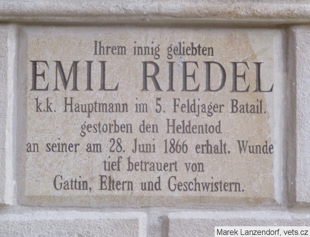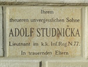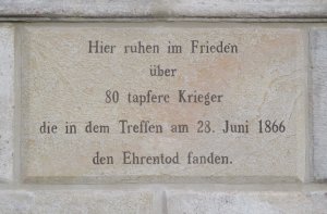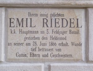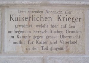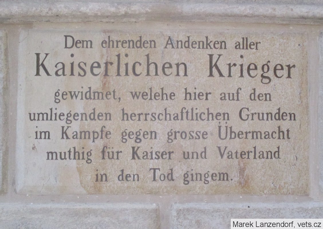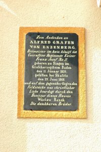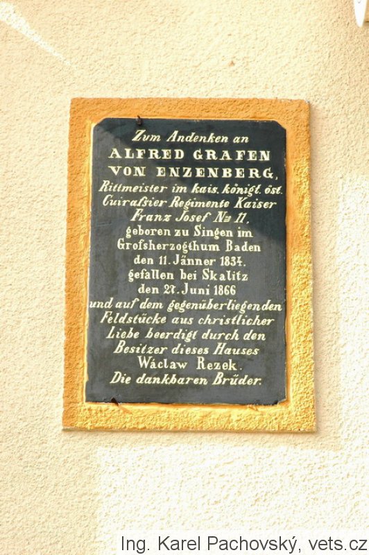 Deska věnovaná rytmistru 11. kyrysnického pluku hraběti Alfredu von Enzenbergovi. Votivní deska je upevněna na zdi hostince čp. 11 při staré silnici. Hrob padlého má být na protější straně silnice za kamenným křížem; přesné místo není známé.