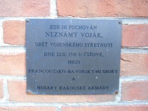 Dne 22.11.1741 došlo na okraji obce Čížová ke srážce uherské jízdy (předvoje císařských vojsk vedených Lobkovicem) s francouzkými pěšáky (zadní voj francouzského vojska, doprovázejícího bavorského kurfiřta do Prahy). V bitvě padlo na tři stovky francouzských vojáků, kteří byli pohřbeni v prostoru dnešní křižovatky. Na tomto místě byl pak vztyčen dřevěný kříž, který je od těch dob soustavně obnovován.