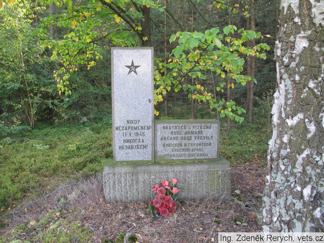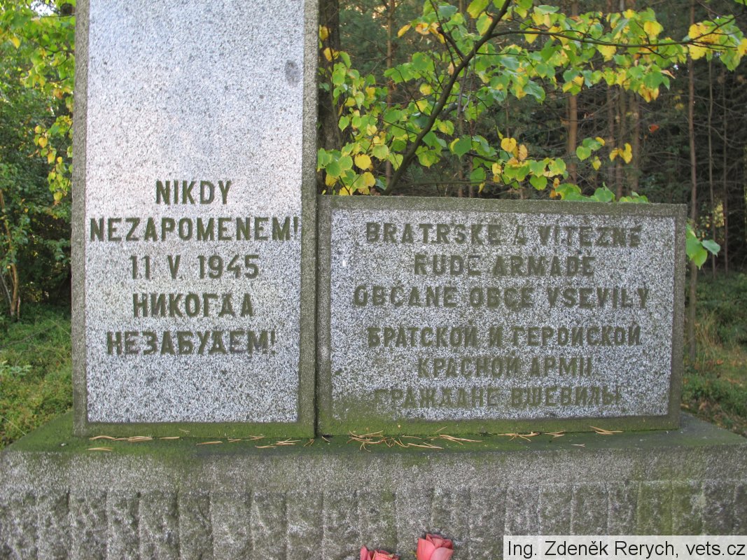Umístění: Vševily, na okraji lesa, asi 1 km západně od VševilNápis: