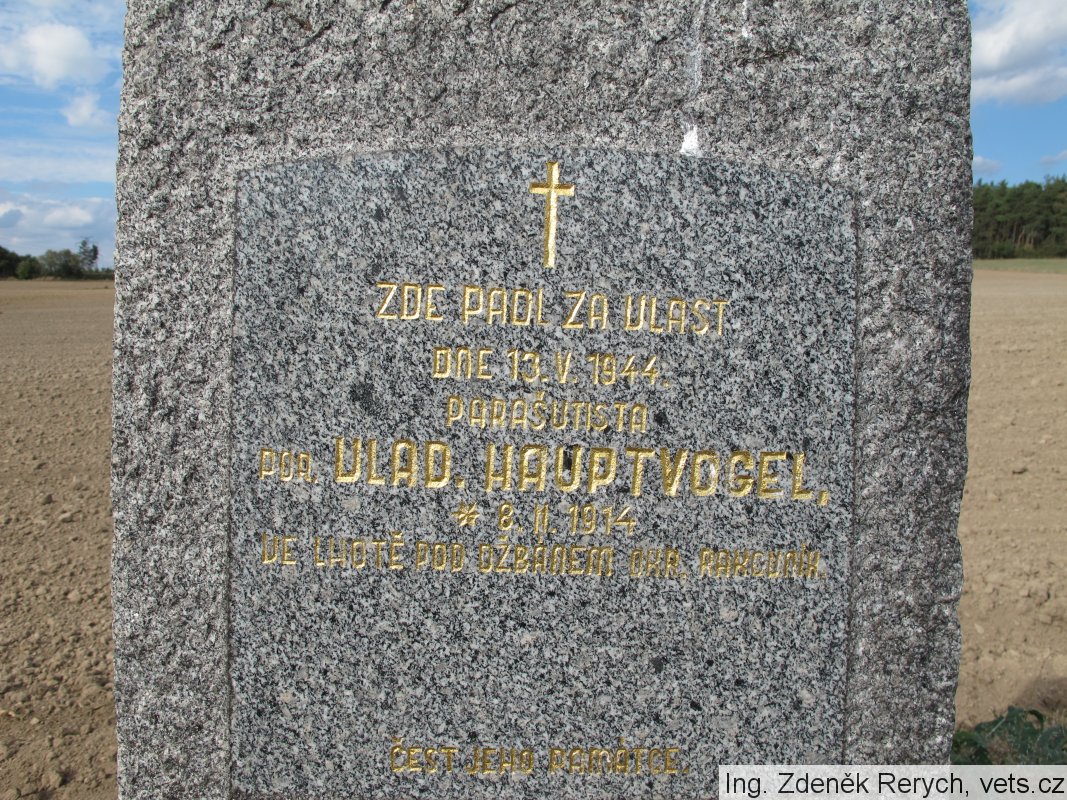 Vladimír Hauptvogel byl jedním ze čtyř parašutistů výsadku Chalk z Anglie shozeného z 8. na 9.4.1944 západně od Kamýka nad Vltavou. Měli navázát radiové spojení s Londýnem. Ukrývali se u místních obyvatel a v hájovnách v oblasti Chraštice, Chraštičky, Kozárovice a Zalužany. Zradou jednoho parašutisty z výsadku Sulphur, který byl vysazen ze stejného letadla na Rakovnicku, byl gestapu vyzrazen