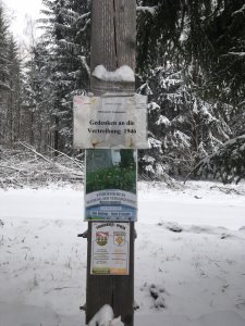 Po "údajné" vichřici část pomníku spadla a roztříštila se. Několika zastupitelům se podařilo, alespoň tento stav pomníku uložit do "depozitu".