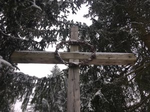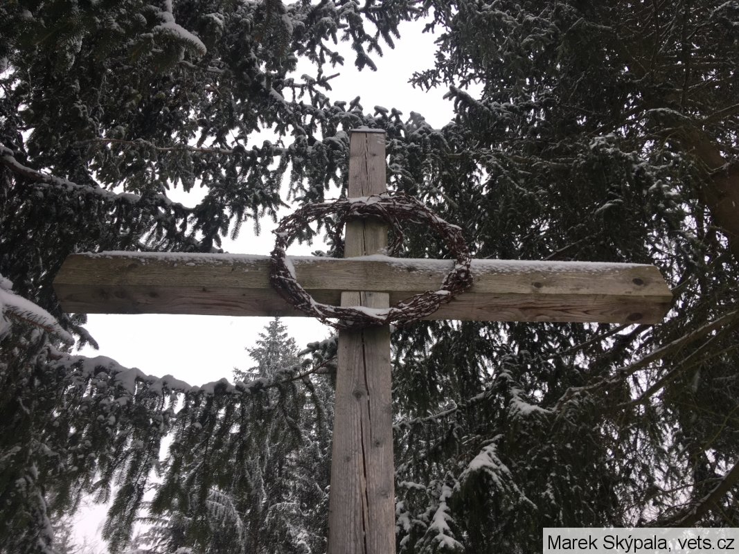 Kříž smíření byl postaven v roce 2013 a má vyjadřovat smíření s minulostí areálu Muna, ve kterém byl za války spojenecký zajatecký tábor a po válce internační tábor pro Němce. Postaven byl bez nápisu, texty na kříži jsou doplňovány živelně.