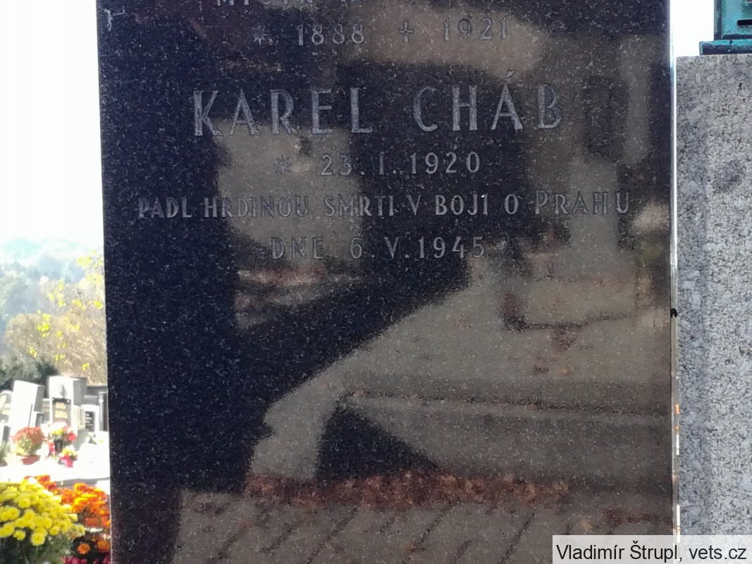 Syn místního strážníka Františka Chába se ihned po vypuknutí povstání 5. května 1945 zapojil do bojů v Praze. Při dopravě zbraní a střeliva obráncům Rozhlasu byl těžce raněn dávkou z kulometu a v neděli 6. 5. zemřel.